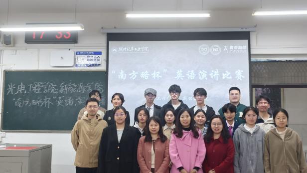 为激发学生英语学习热情,提升英语应用能力。10月20日,光电工程学院、新能源学院在1205教室举办了“南方略杯”英语演讲比赛,外语外贸学院教师陈名凤,学院学工办主任李萌、团委书记秦运来、辅导员王淑君、刘兴洋以及优秀学生杨志广、袁天畅、杨露担任本次大赛评委。