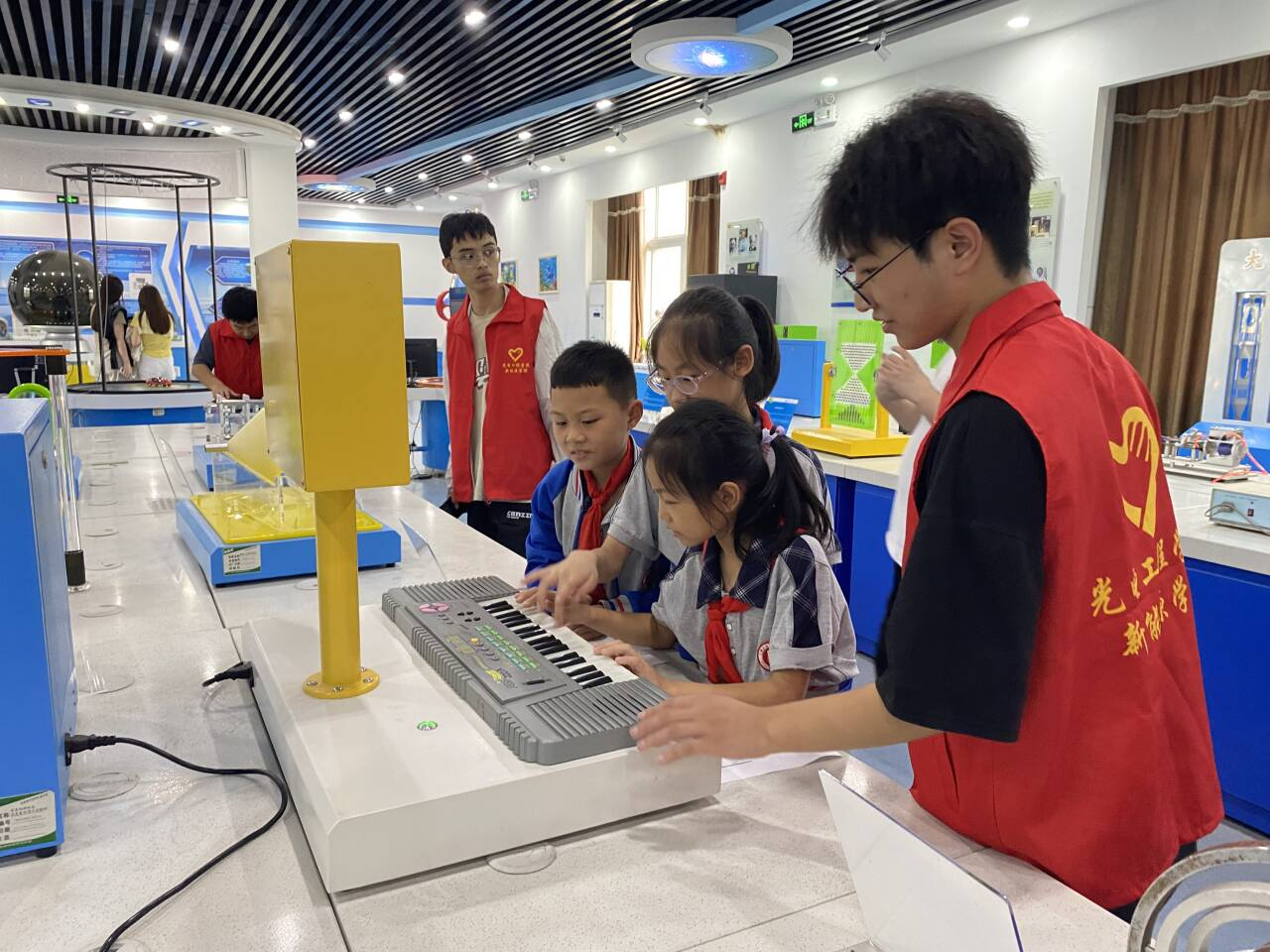 活动伊始,毛书哲老师针对小学生的认知特点,以生动浅显的语言详细介绍了实验室的基本概况及安全须知。随后,在老师和志愿者的悉心引导下,同学们分组有序参观了各类物理实验装置。从光的折射与反射的精彩演示,到电磁感应现象的直观展现,再到力学原理的趣味互动实验,每一项展示都深深吸引了大家的目光,激发了浓厚的兴趣。
